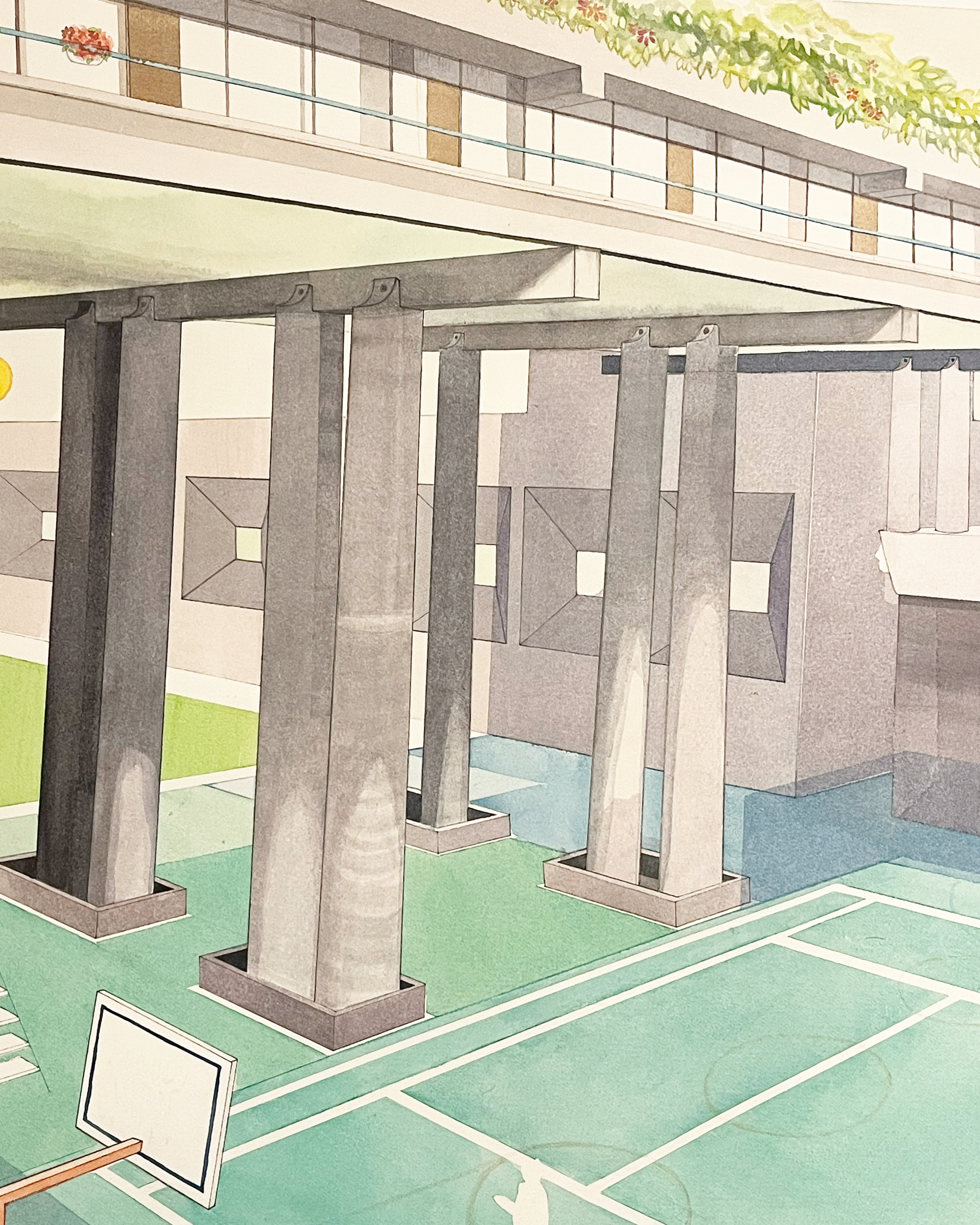 watercolor painting, unite l’habitation, brutalist architecuture